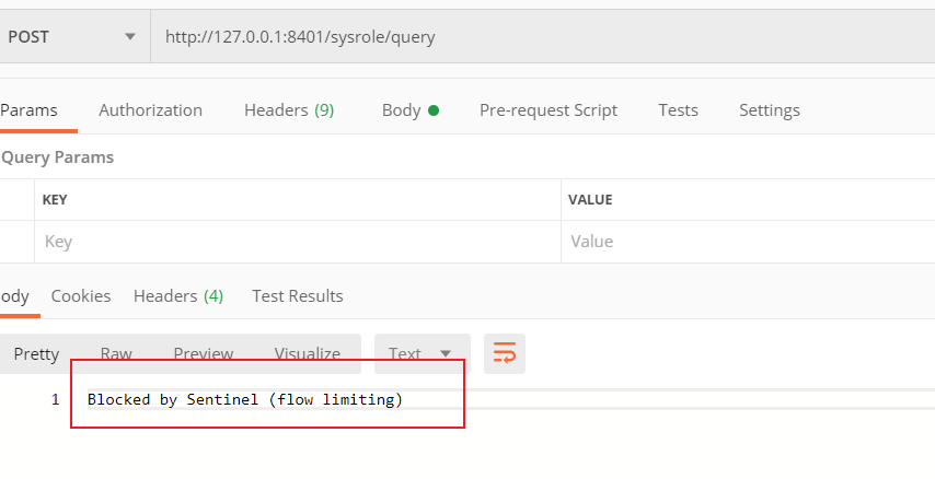 * 与此同时访问“/sysrole/query”资源接口,被限流了!