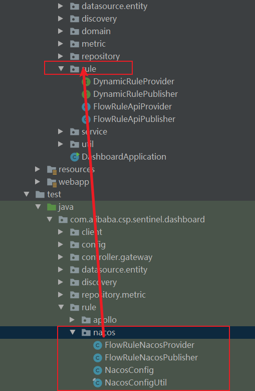 * 把sentinel-dashboard子模块`src/test`下面的包`com.alibaba.csp.sentinel.dashboard.rule.nacos`拷贝到`src/main/java`对应的package下面。
