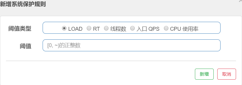 * **入口 QPS**:当单台机器上所有入口流量的 QPS 达到阈值即触发系统保护。