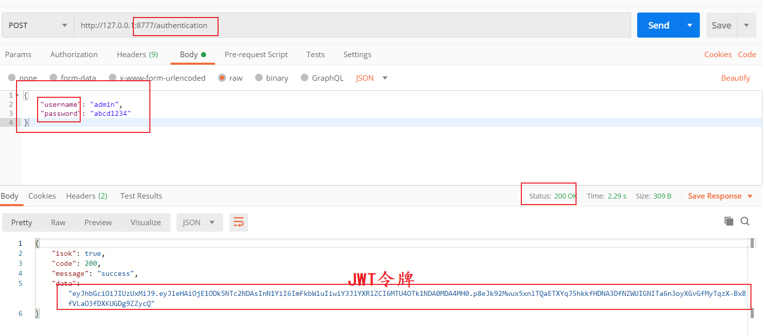 * authentication实现登录认证,认证成功之后返回JWT令牌