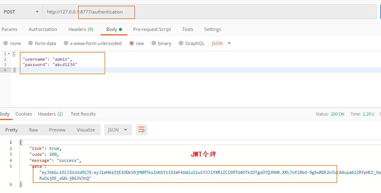* 去登陆`http://127.0.0.1:8777/authentication`,得到JWT令牌
