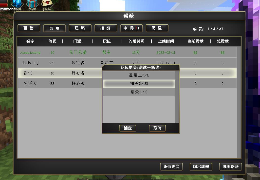 * 可动态设置帮派成员上限(可根据等级/建筑数量配置)