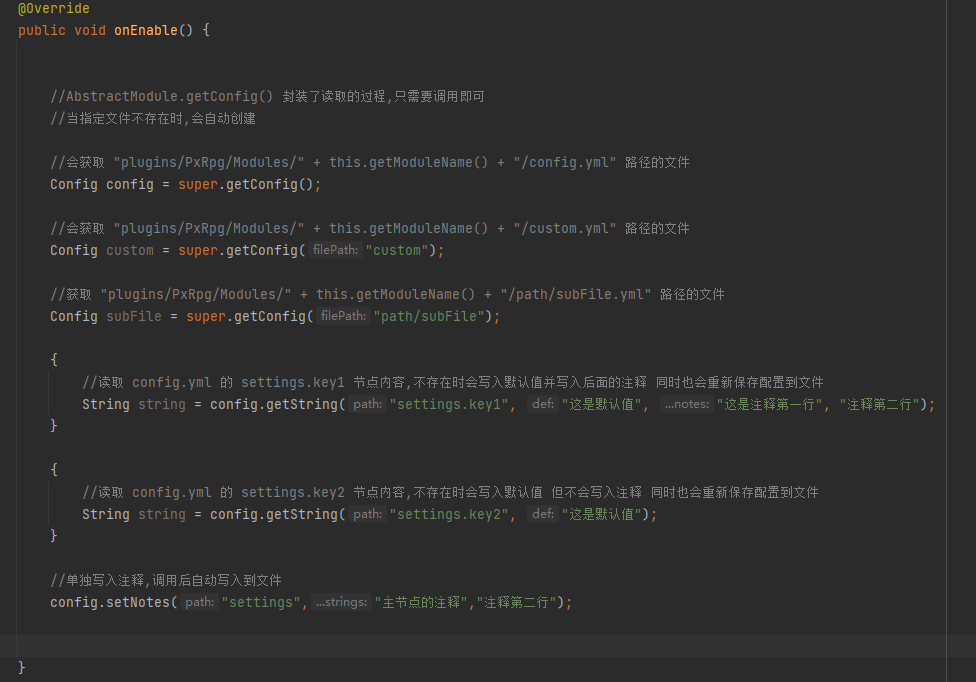 //会获取 "plugins/PxRpg/Modules/" + this.getModuleName() + "/config.yml" 路径的文件