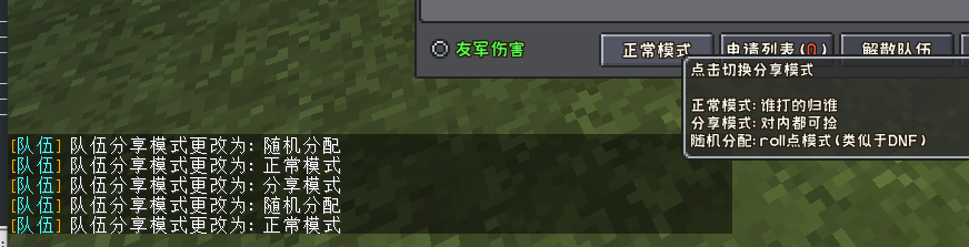 * 需求模式(附属插件实现):根据物品的品质(自定义)提示谁要谁点,点的玩家进行随机分配