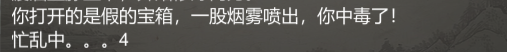 打开假宝箱,会忙乱5秒钟,并且中毒,每秒扣除1%血量,可叠加到20层,没学不会死亡,直接传送客栈。