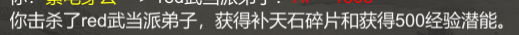 这时飞过去被侵犯的门派,找到对应xxx弟子,杀死会奖励500经验潜能1补天石碎片(10个合成一个,50%概率成功)大约会刷出10-20只左右