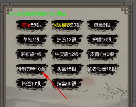 钓鱼需要鱼竿,这个可以在扬州杂货铺(扬州中央广场,往右走一步,往下走到杂货铺-杨永福)购买特质鱼竿,鱼竿价值10金,但是下线消失这个要注意。