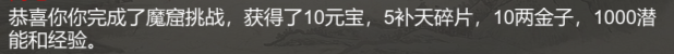 通关(100层)额外奖励10元宝,1000经验1000潜能10金