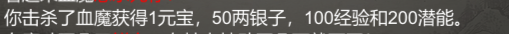 每只血魔奖励1元宝100经验200潜能50银
