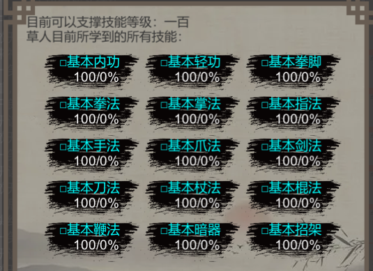 (基本上新人轻功内功招架输出武学一般都100级就不会死)