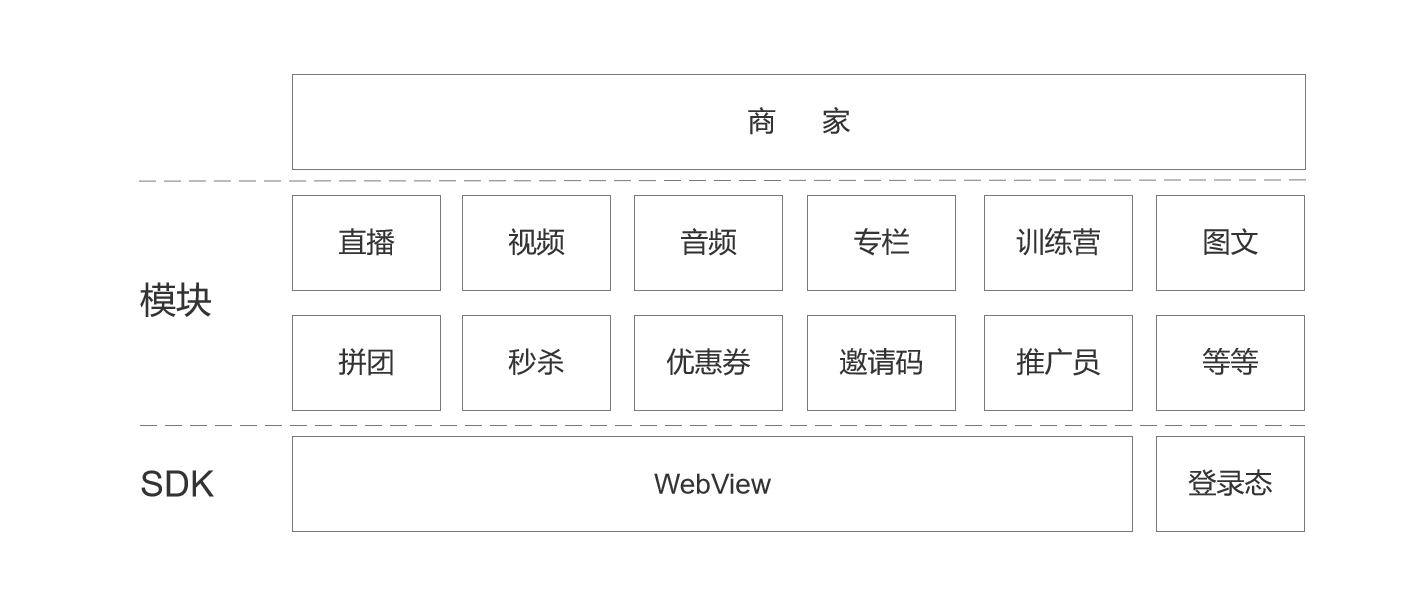 为满足商家通过移动应用搭建<font color='red'>自有知识店铺</font>、打通全渠道店铺的业务需求,将小鹅通的内容交付系统以<font color='red'>SDKH5嵌入</font>的形式开放出来,赋予开发者丰富的内容交付和变现的功能。更有小鹅通强劲的技术及服务作为保障,实现<font color='red'>低成本、高效率的内容交付方案</font>,快速获得App流量的商业化变现。