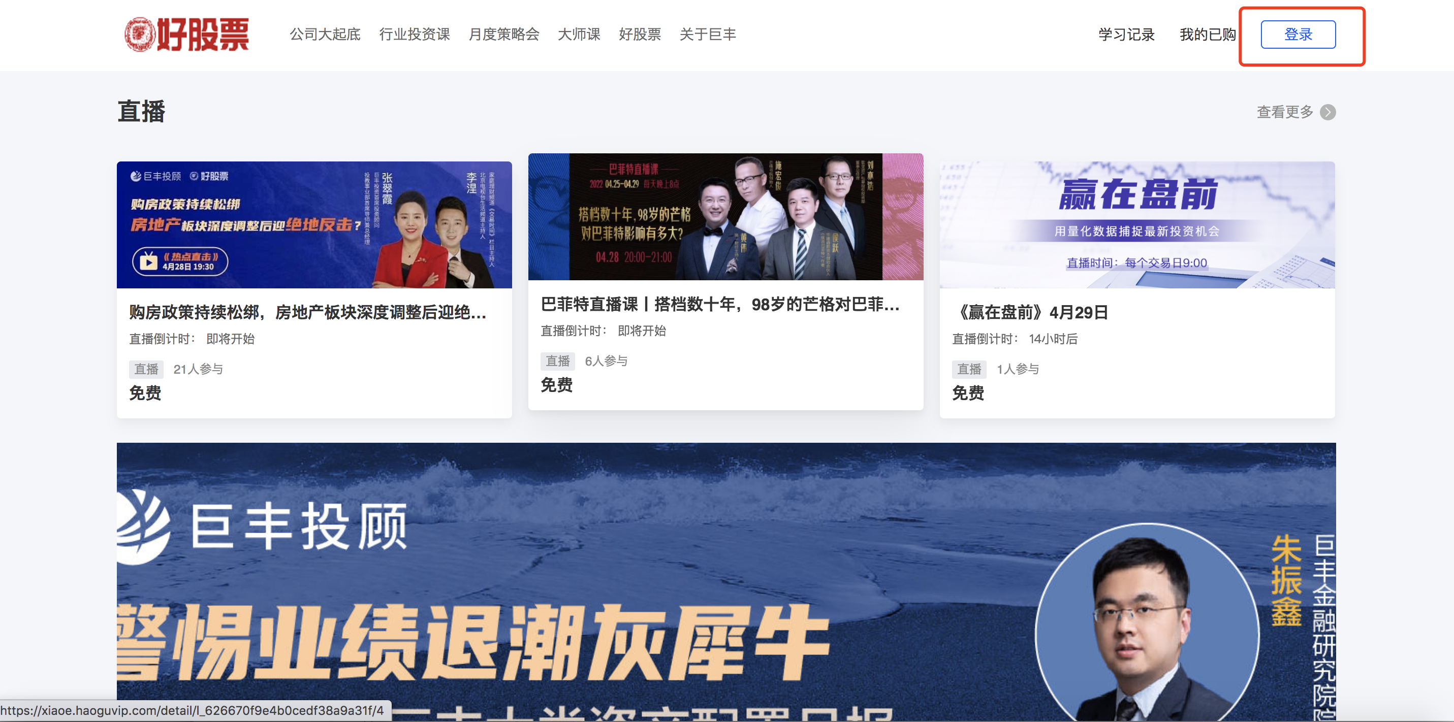 1. 用户首先进入商家自有官网(https://www.haoguvip.com/home/combination?type=tab7&isMyLabel=0),并找到课程/直播列表