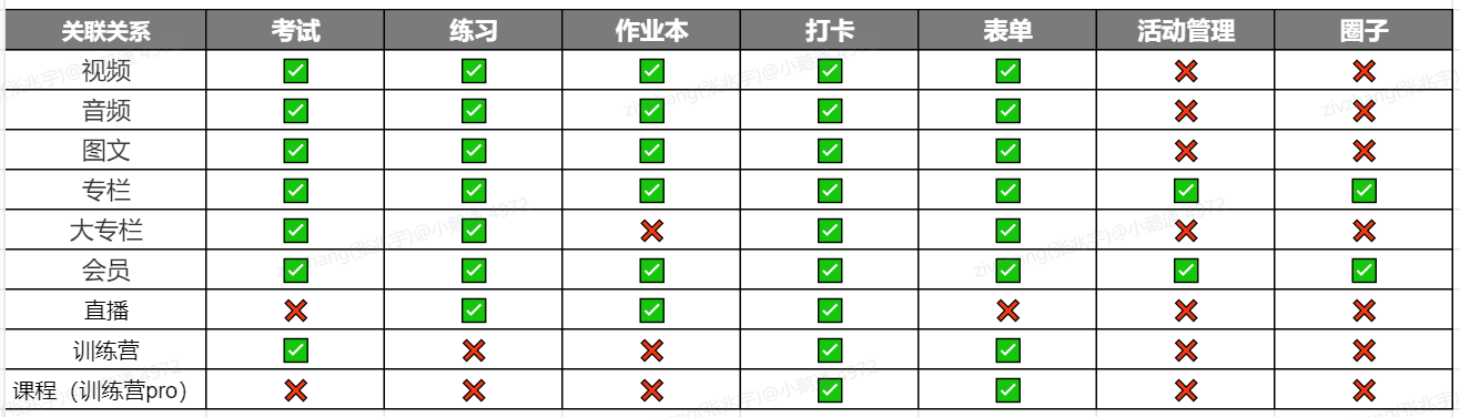 注:如果课程与对应的助学资源之前无关联关系,则不会返回对应字段,以训练营为例,只会固定返回考试(exam)、打卡(clock)和表单(form)三个字段