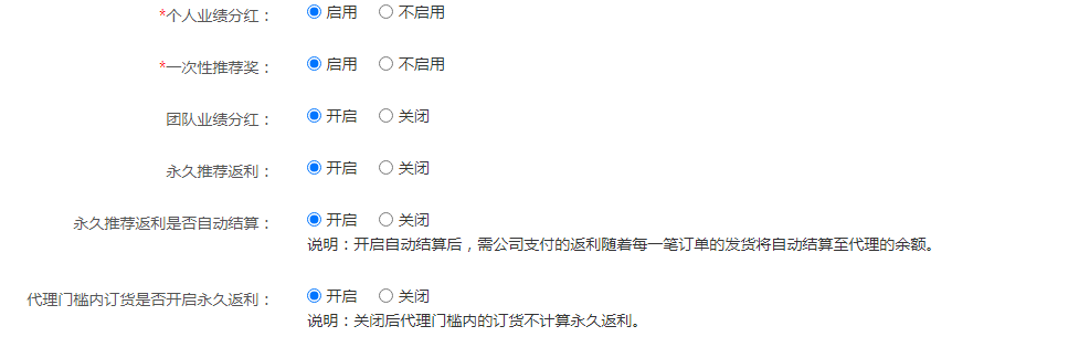 控制个分红和奖励功能是否开启,以及返利设置