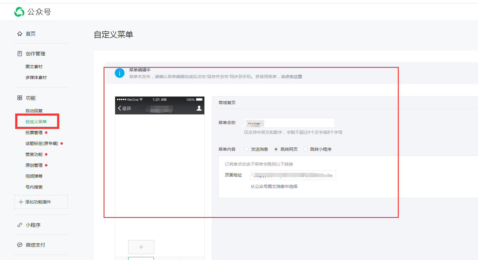 自定义菜单在公众号自行设置