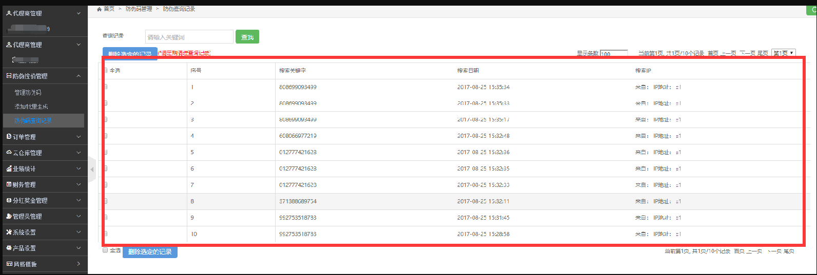 - 查询代理商的查询记录