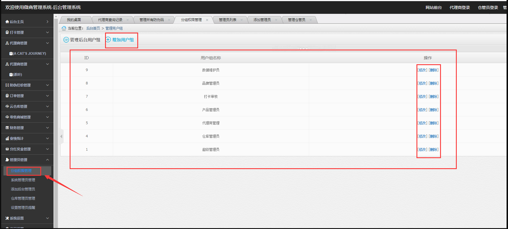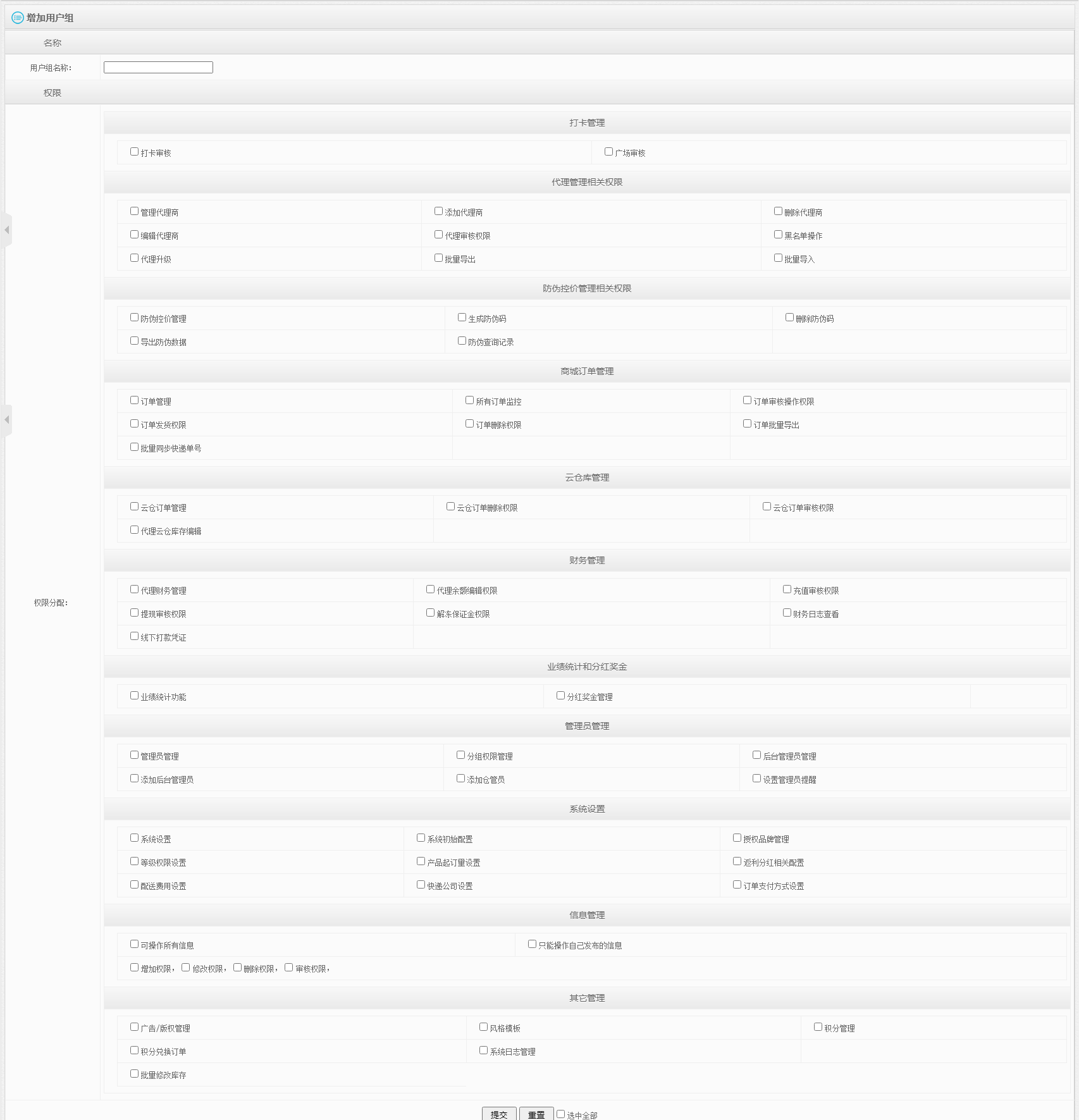将对应权限勾选后,填写分组名称,点击提交。