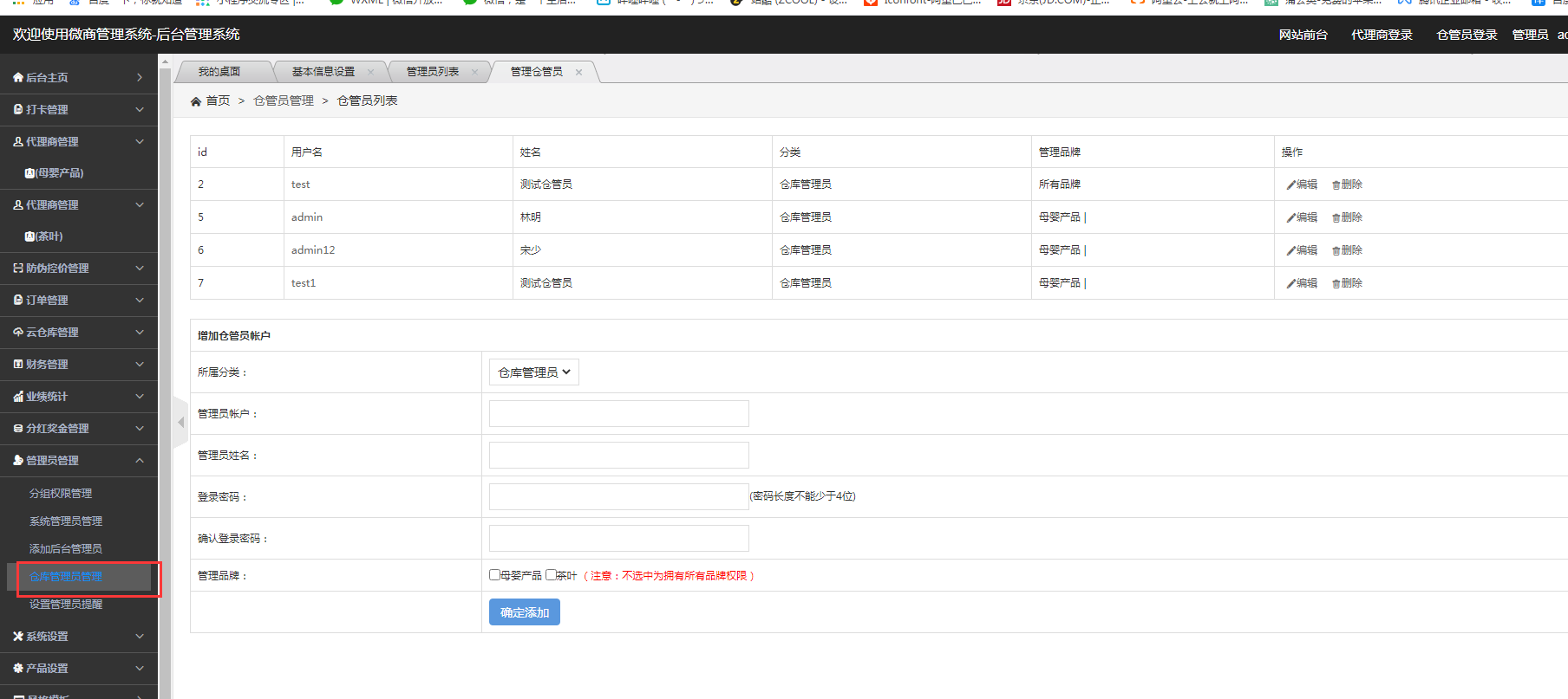1. 在后台添加对应的仓管人员账号