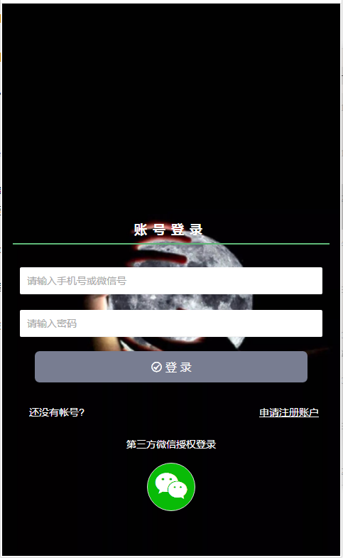 进入系统登录页面后,根据页面提示输入您的“账号”(微信号/手机号)以及“密码”(初始密码12345678,可进入系统后修改),点击“登录”按钮进入系统页面。
