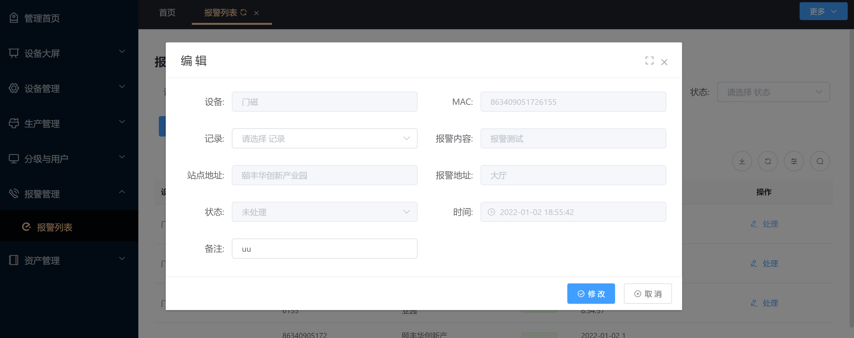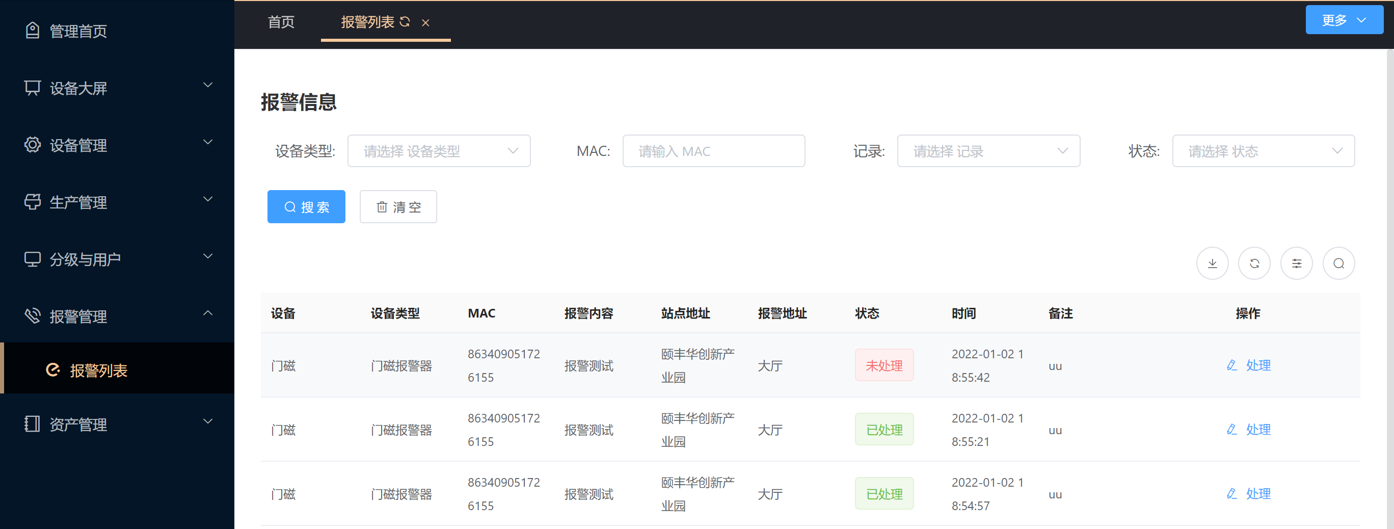 - 3.4.1 报警查询