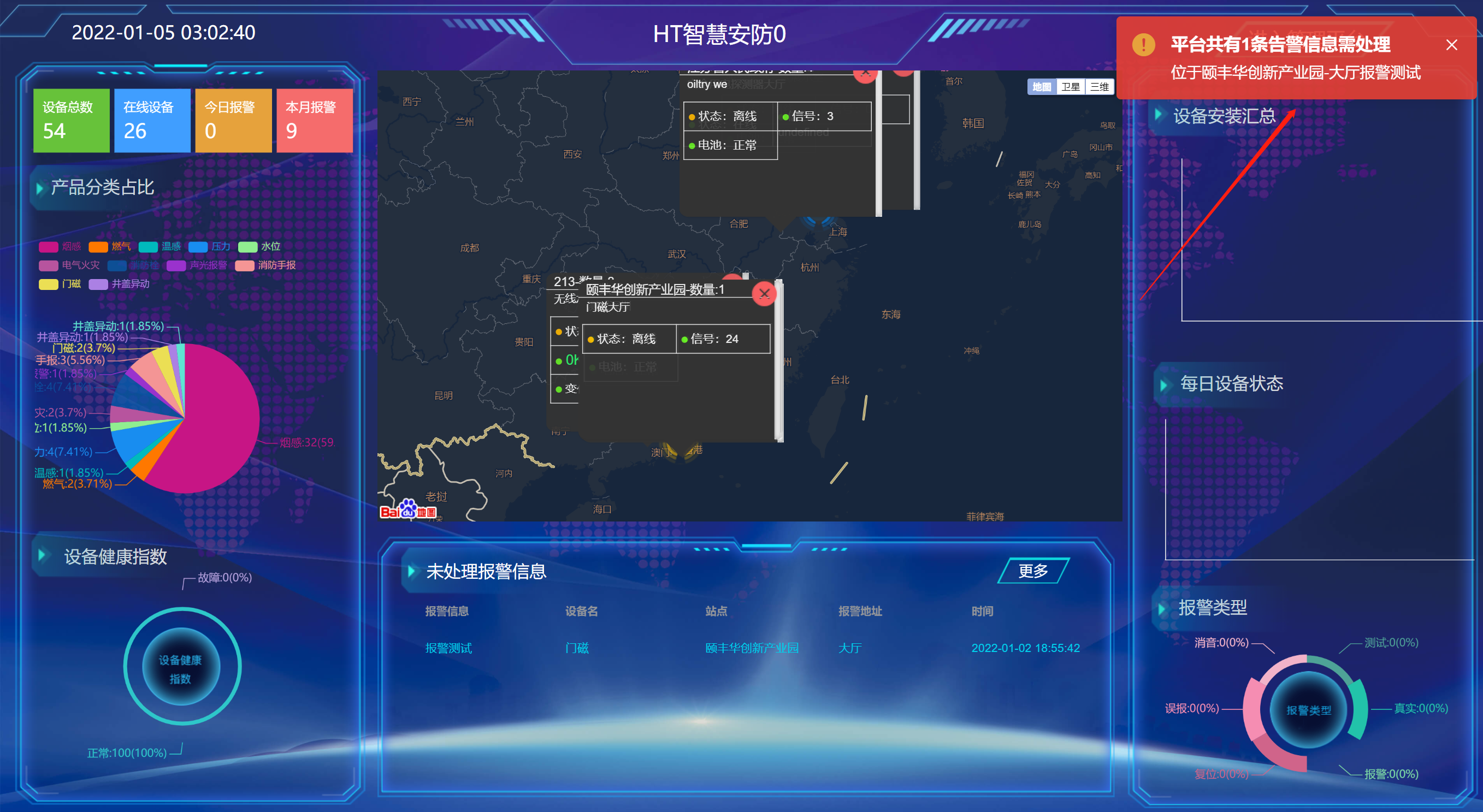 1.进入监测首页-在设备发生报警时,监测首页届时出现一个弹窗信息