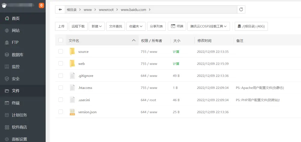 将后端文件上传到此处并解压,效果如下图