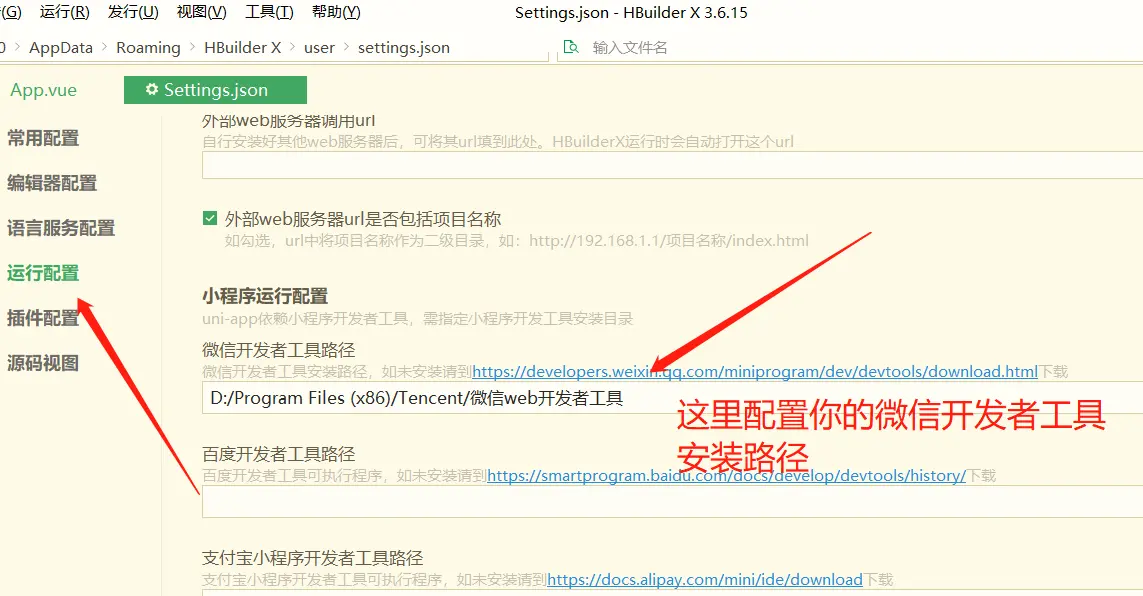 首先配置微信开发工具的路径