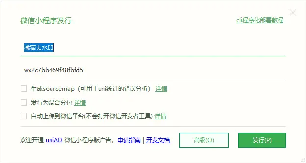 现在可以点击发布小程序,编译成小程序代码了