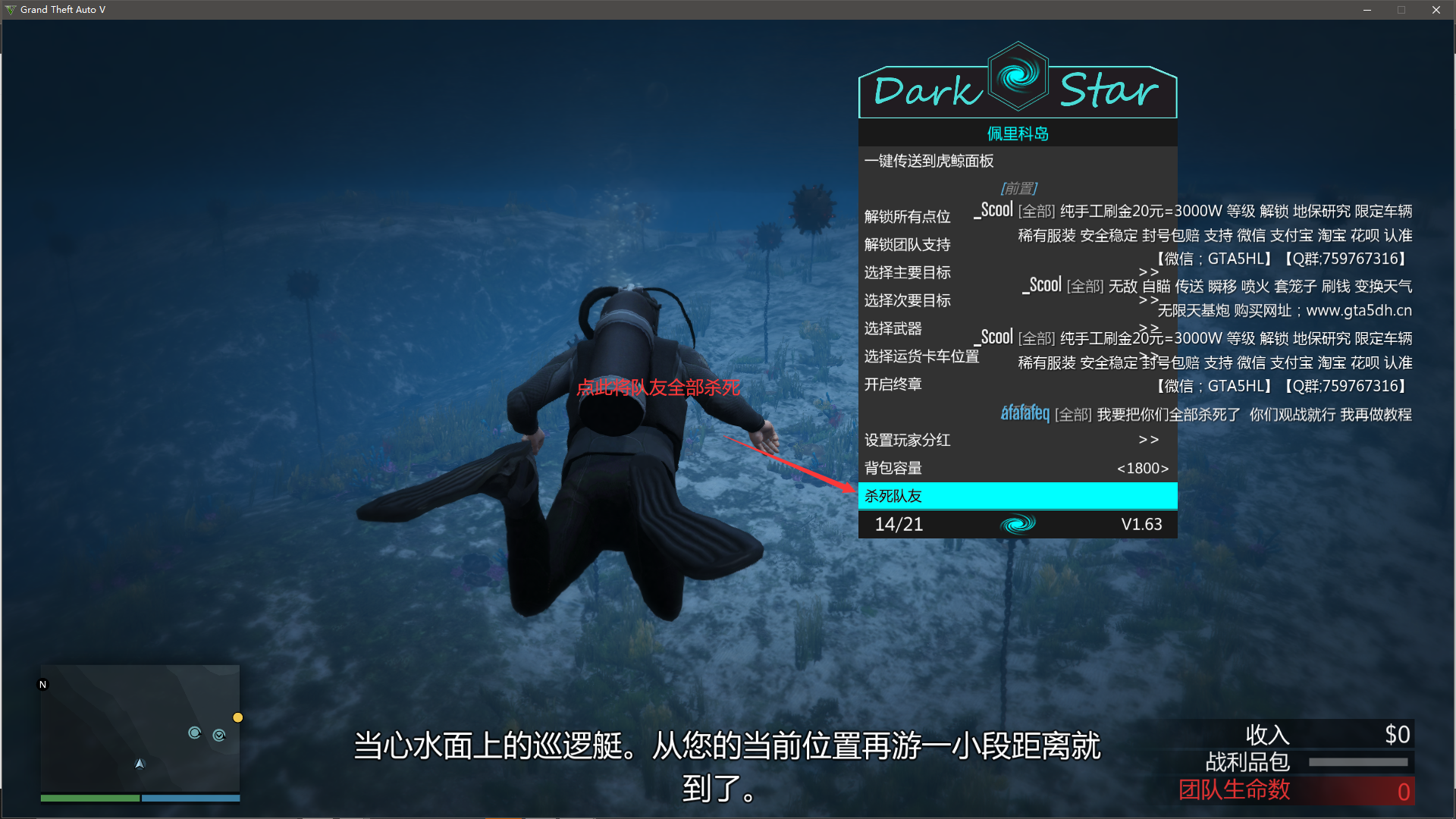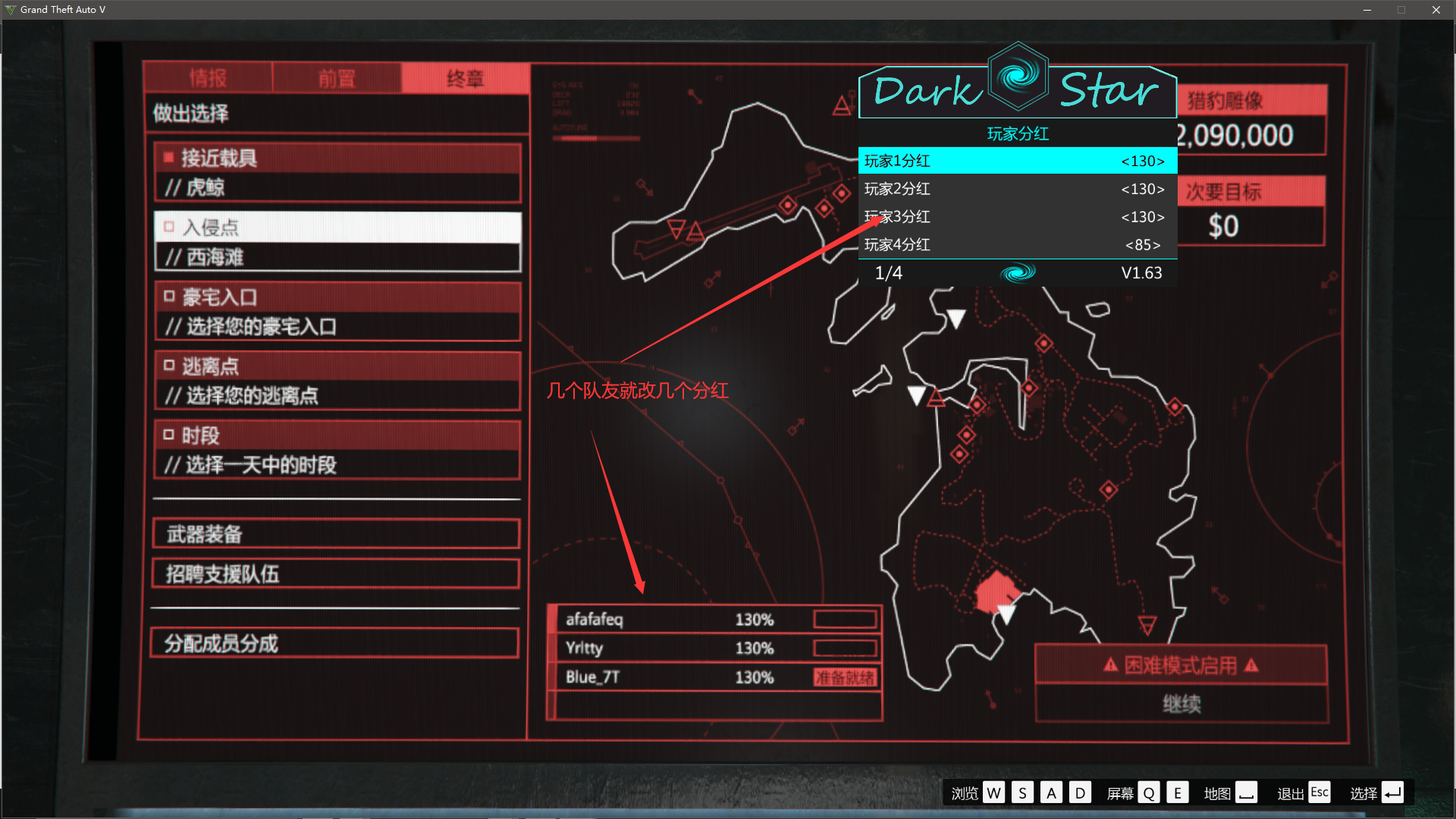 带上队友,给所有人130分红,也可以不带队友(130的分红银行有流水)****(进入虎鲸任务开始时更改分红)