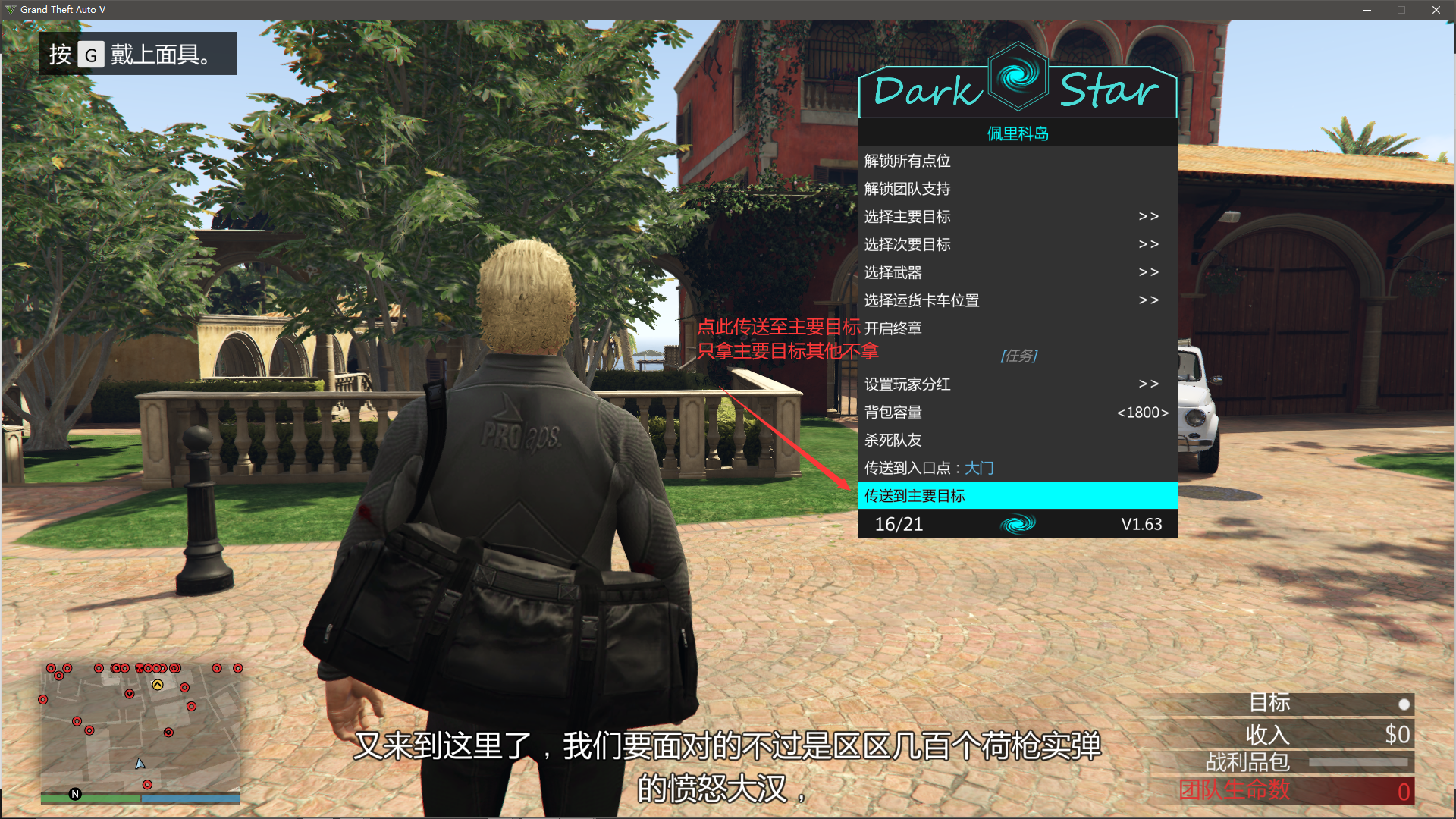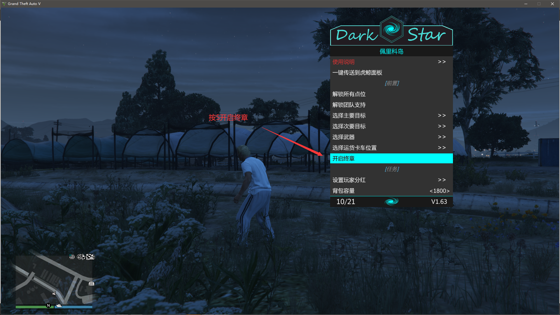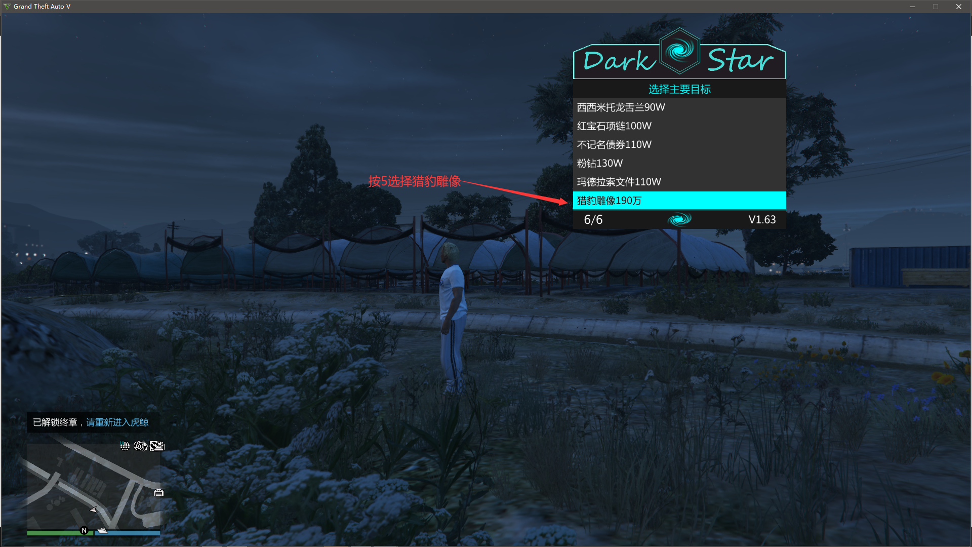 按小数字键盘+号上边的-打开暗星找到任务助手--佩里克岛抢劫--选取主要目标(主要目标建议猎豹)只拿主要,不拿次要),然后点击开启终章**(进入虎鲸前完成)**