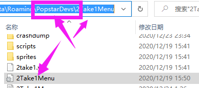 进入PopstarDevs文件夹 再进入2Take1Menu文件夹。里面有个2take1menu的文件。打开他。选择记事本打开