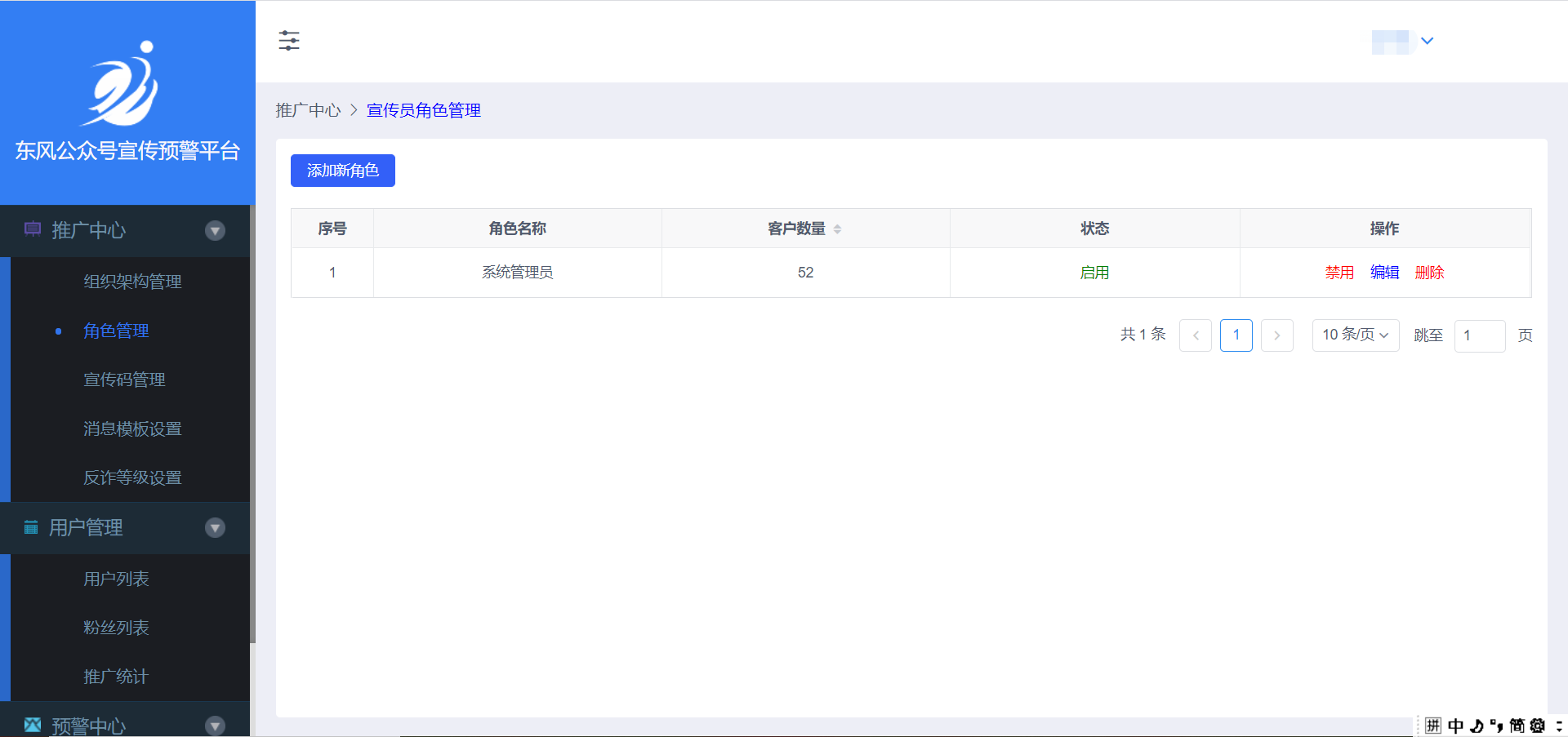 禁用角色后,使用对应角色的所有用户,都将失去权限