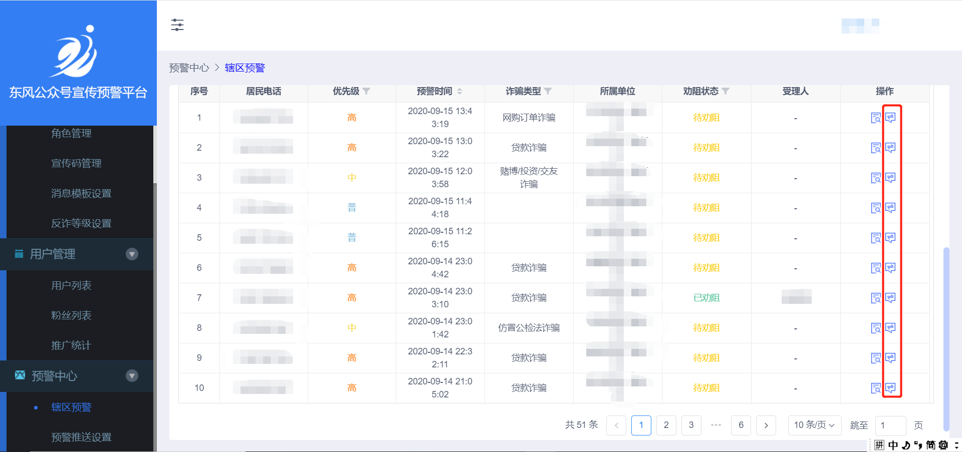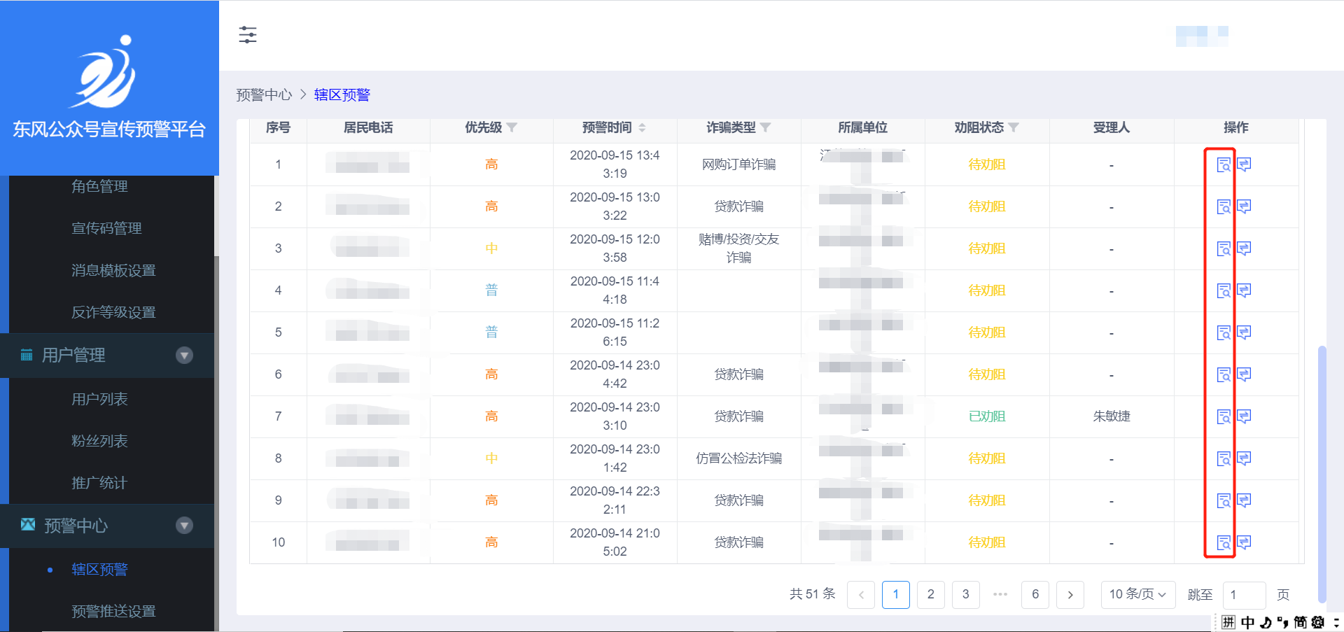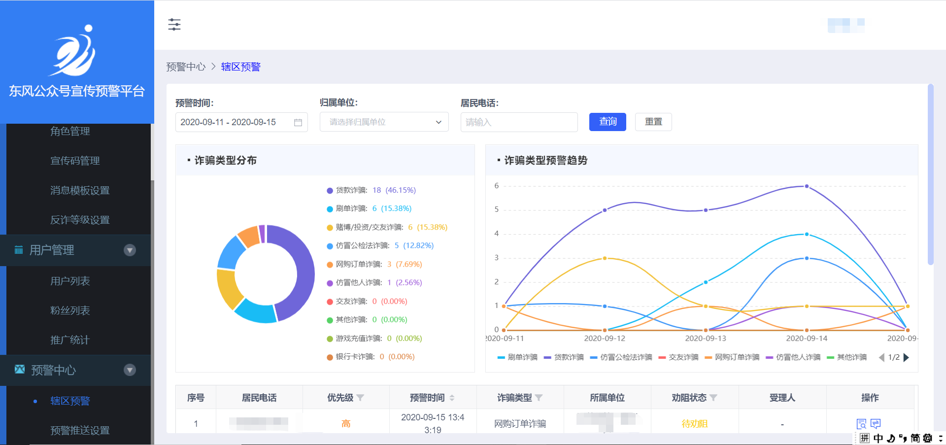 >[info]可查看诈骗预警趋势和诈骗类型分布