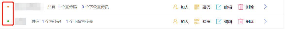 添加完宣传员、下级宣传员帐号后。如上图红框内,绿色标点表示用户已在民警端进行绑定,橙色标点表示用户还未在民警端进行绑定