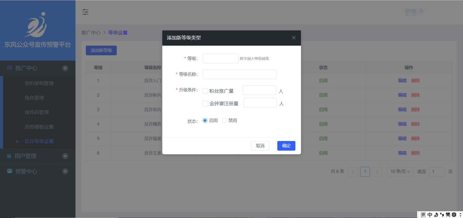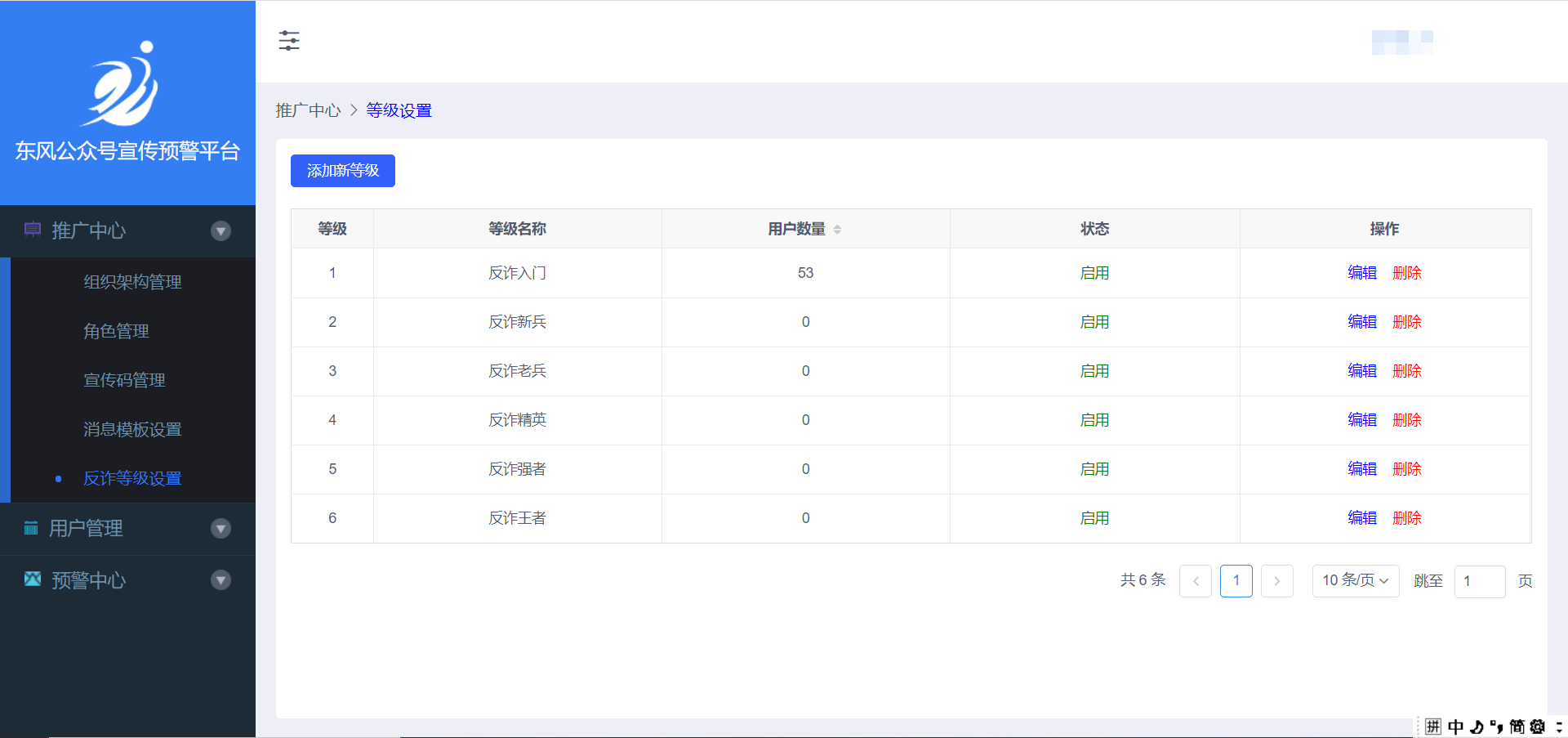 >[info]**民警端**账号会根据推广量显示不同的反诈等级
