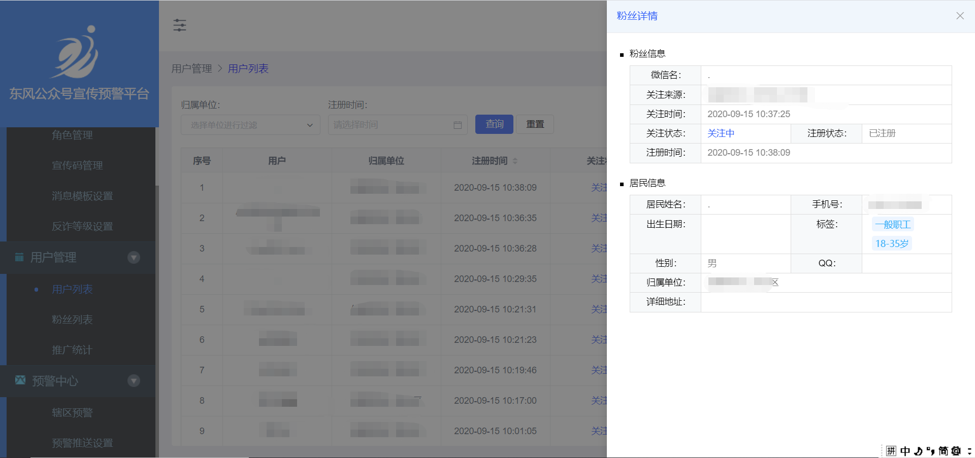 > 可以根据要求对用户进行筛选,并查看单个用户的详情