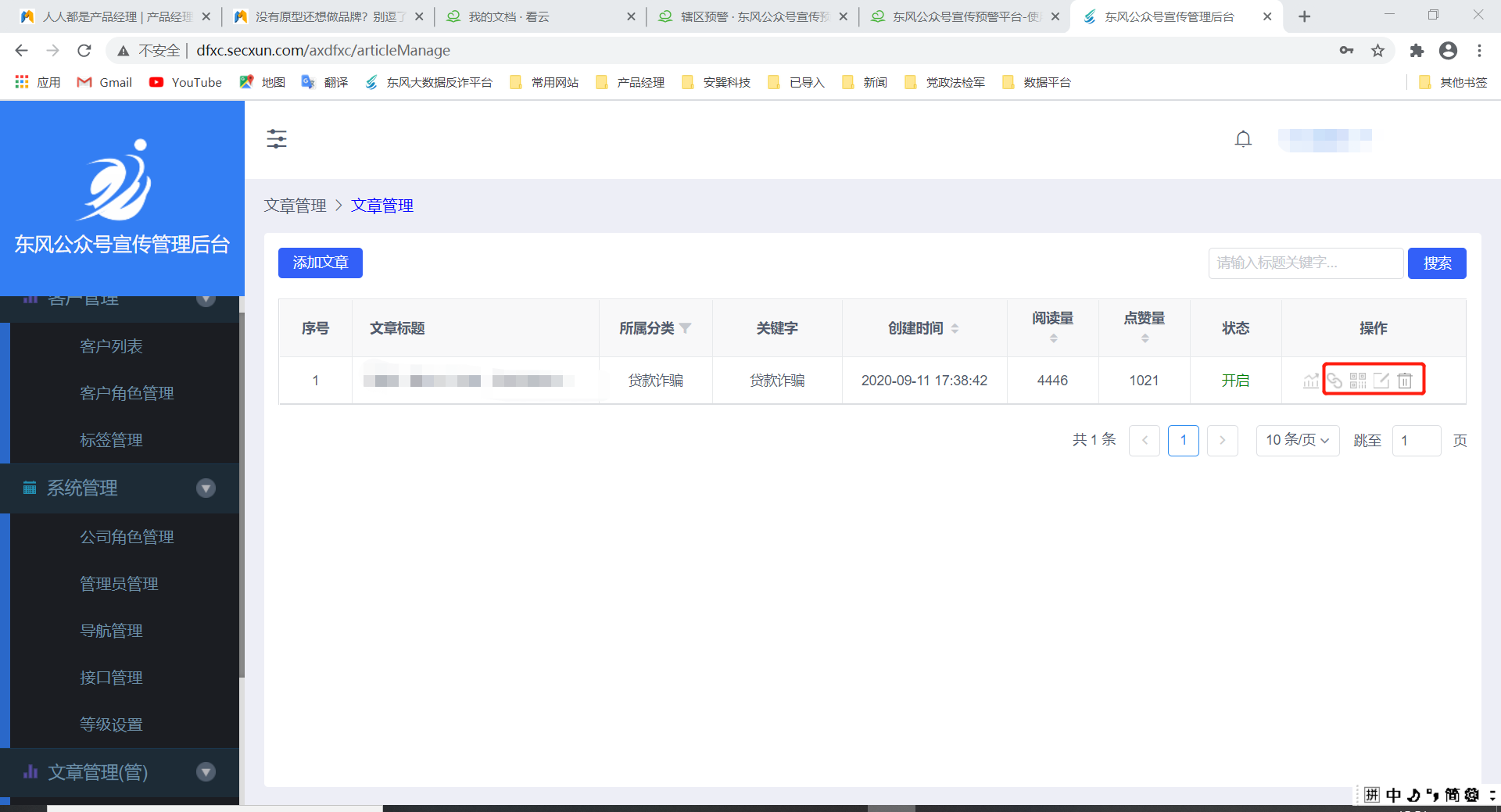点击红框中的四个按键,则可分别进行复制文章链接、查看文章二维码、编辑文章、删除文章的操作。
