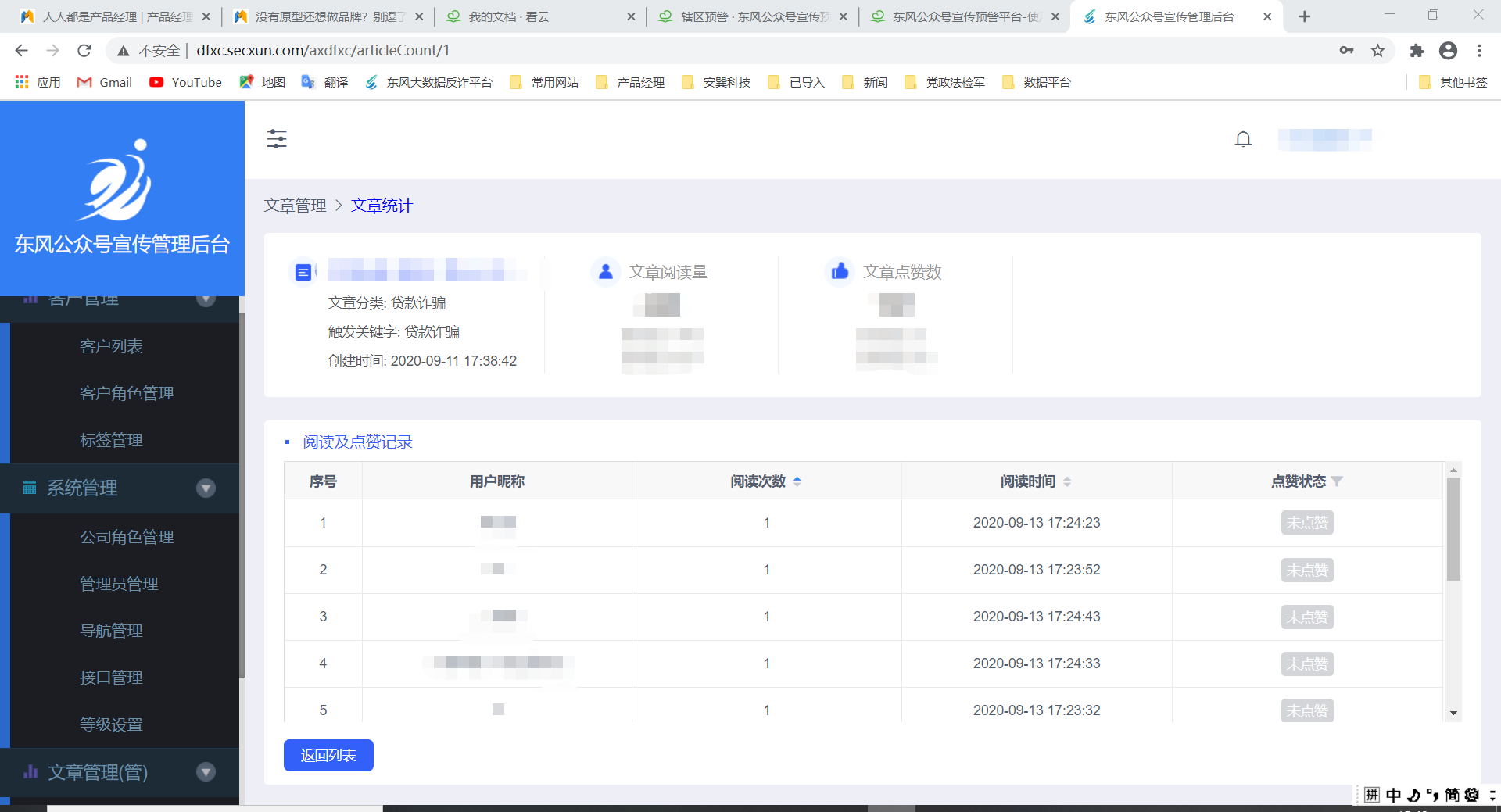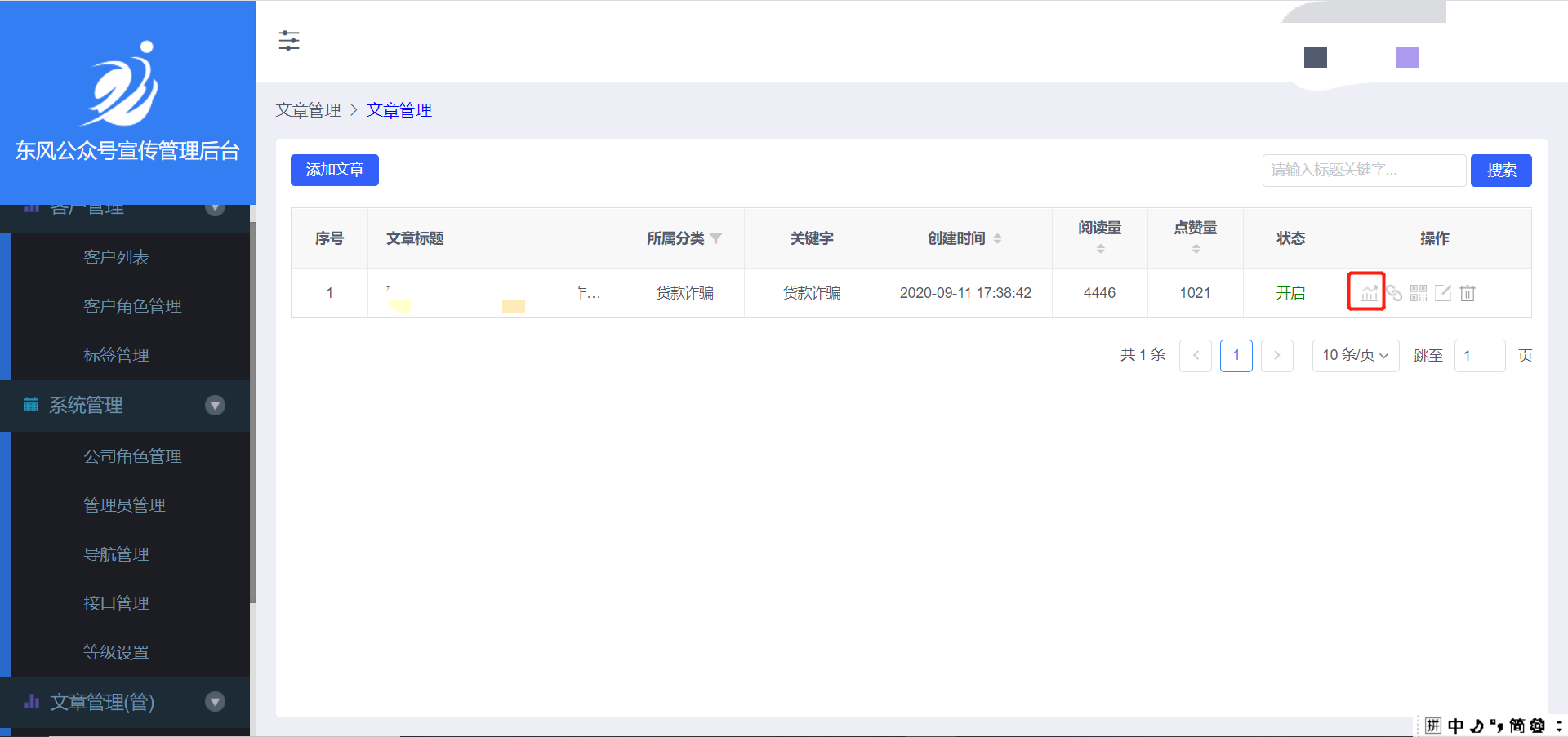 * **查看文章数据**