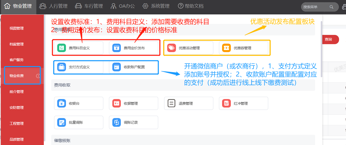1、物业缴费配置前提操作说明