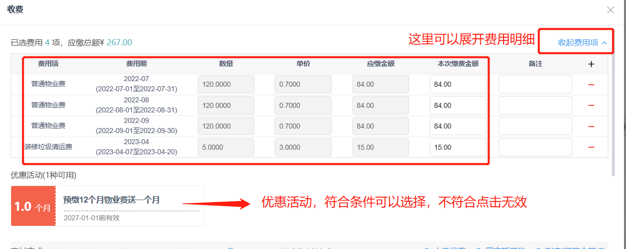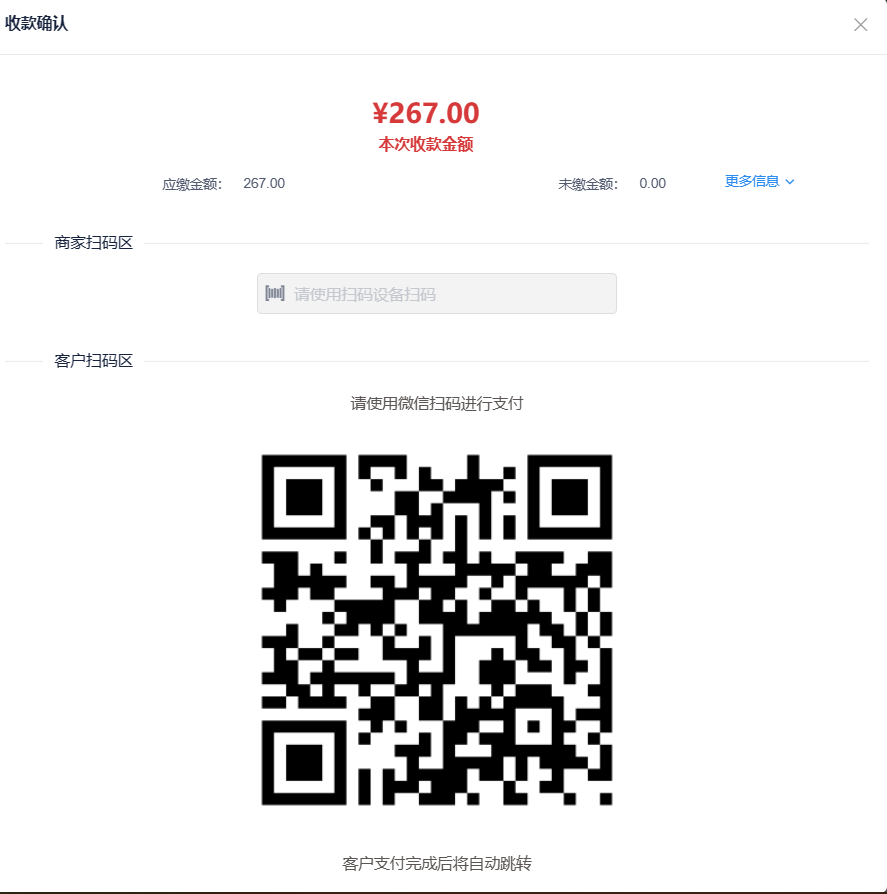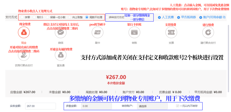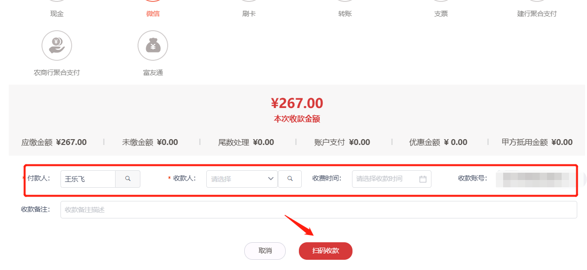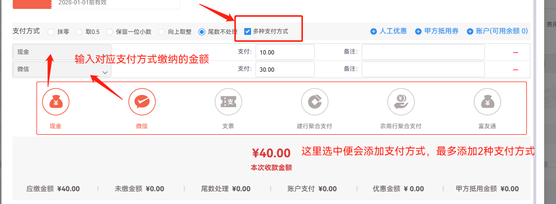 若缴费一部分使用现金一部分使用扫码,可添加对应的缴费方式