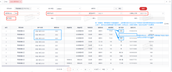 6、【欠费明细】:可查询至欠费截止日期,对应资产开始费用期月份到结束费用期月份的所有欠费明细。