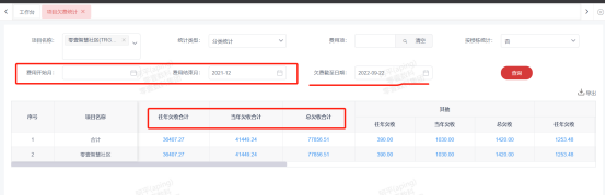 1、【项目欠费统计】:项目欠费统计可以查看费用开始至结束期间,截止到目前或所选的欠费截至日当天的欠费情况;如需查业主的对应查看业主欠费统计报表即可。