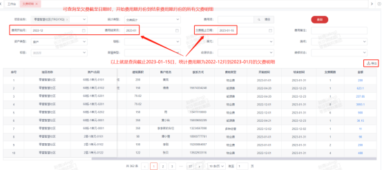 2、【业主欠费统计】:统计业主在指定的时间段内,截止到目前或所选的欠费截至日当天的欠费情况。
