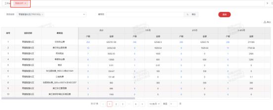 5、【账龄分析】:统计对应费用项,不同欠费月份的户数和欠费金额数。