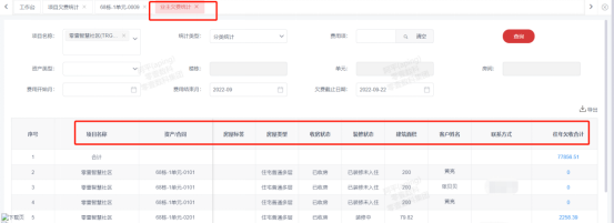 4、【业主欠费月统计】:统计业主在指定的时间段内,截止到目前或所选的欠费截至日当天,各费用项的费用期(费用年或费用月)欠费情况,可选择对应资产精准查询。