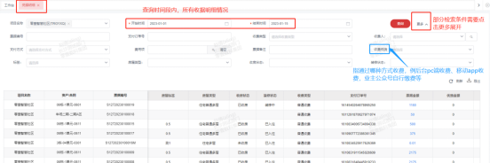6、【支付方式明细】:主要查询对应时间段内,相关收据的支付方式明细。