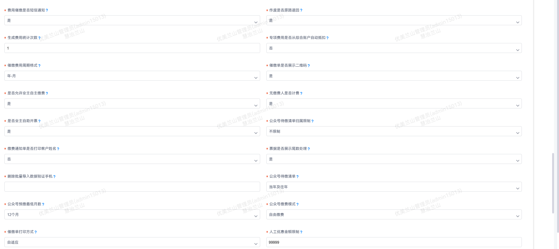 ## 往下拉找到物业费用板块,可以设置对应的信息
