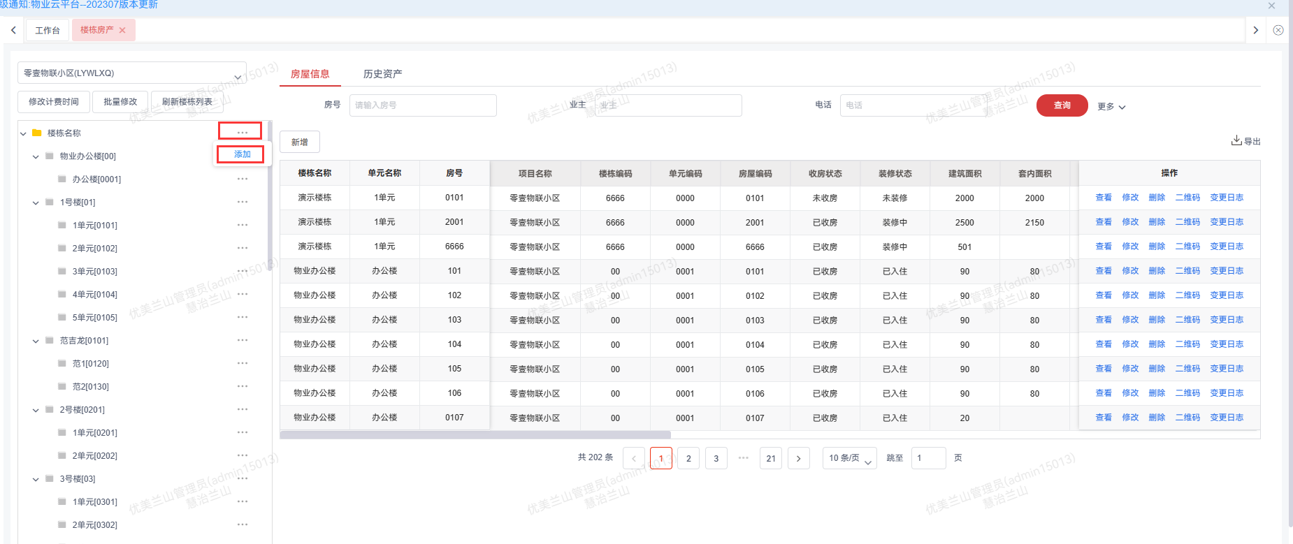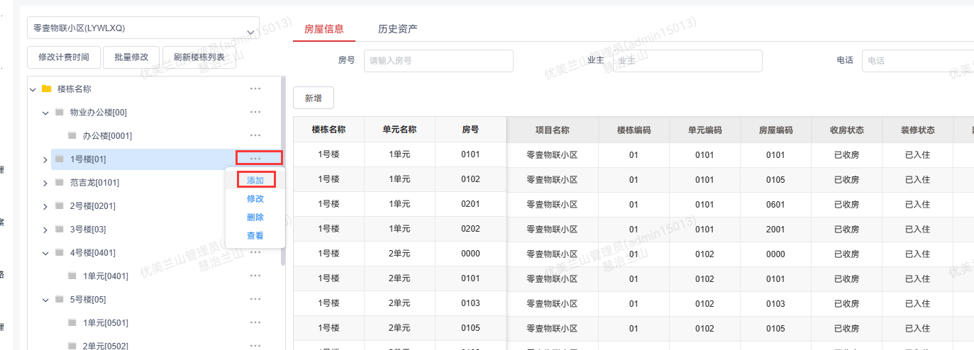 1.点击楼栋后边的“...”点击添加。