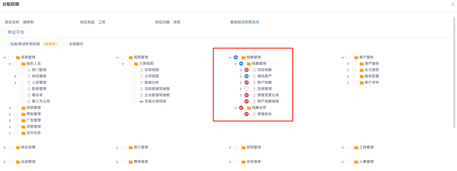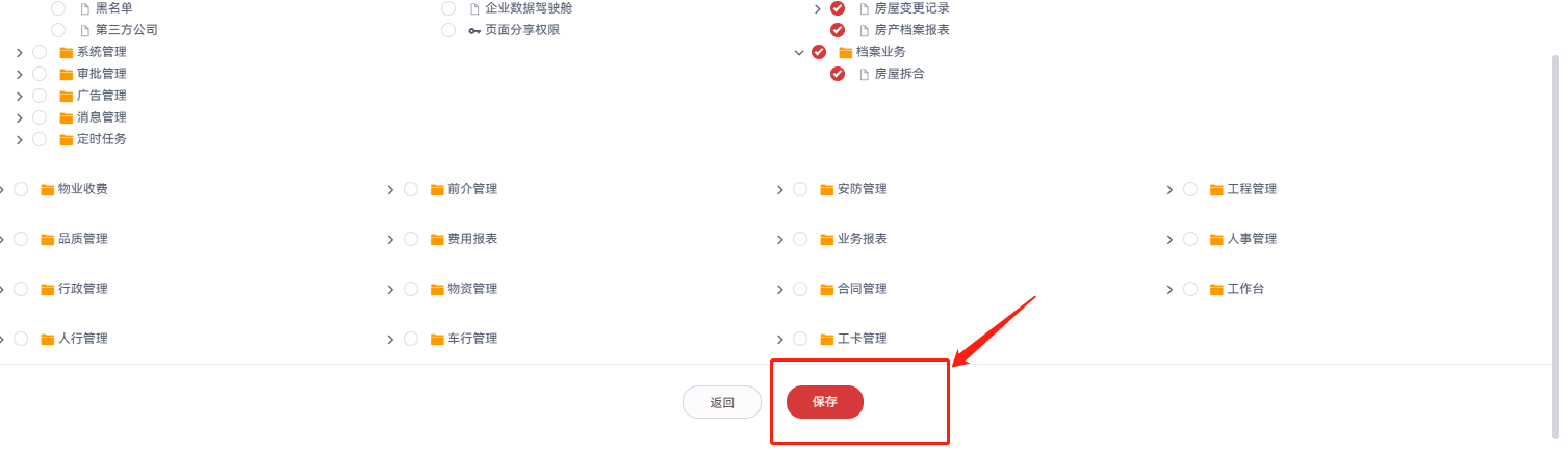 ### **比如只需要房屋信息和住户信息的管理,打勾下拉保存即可**