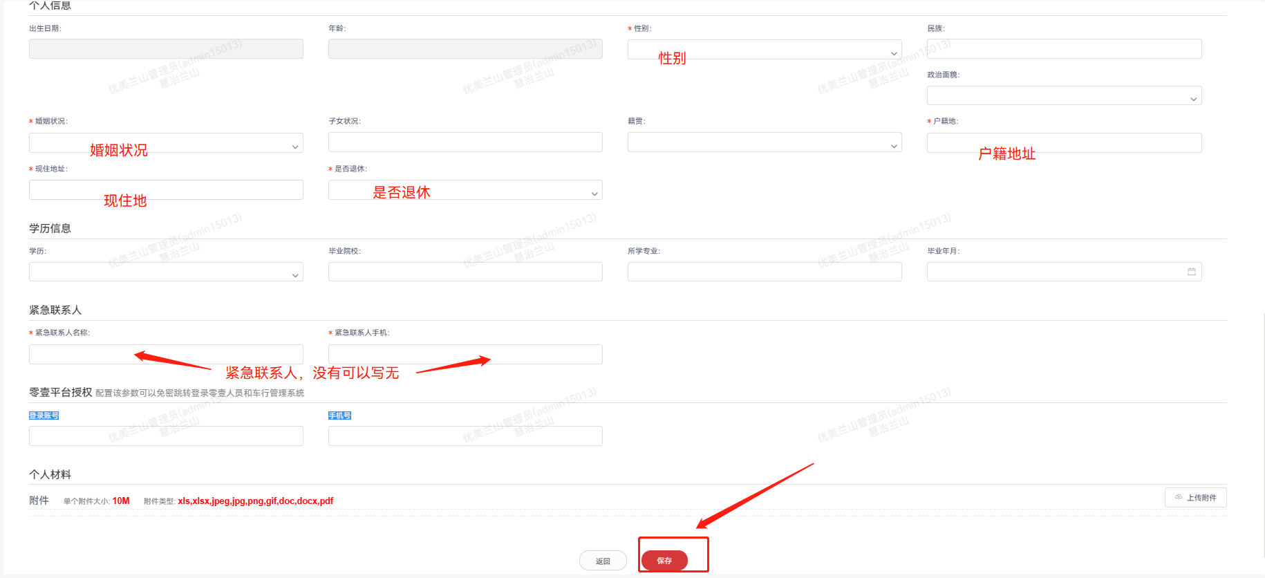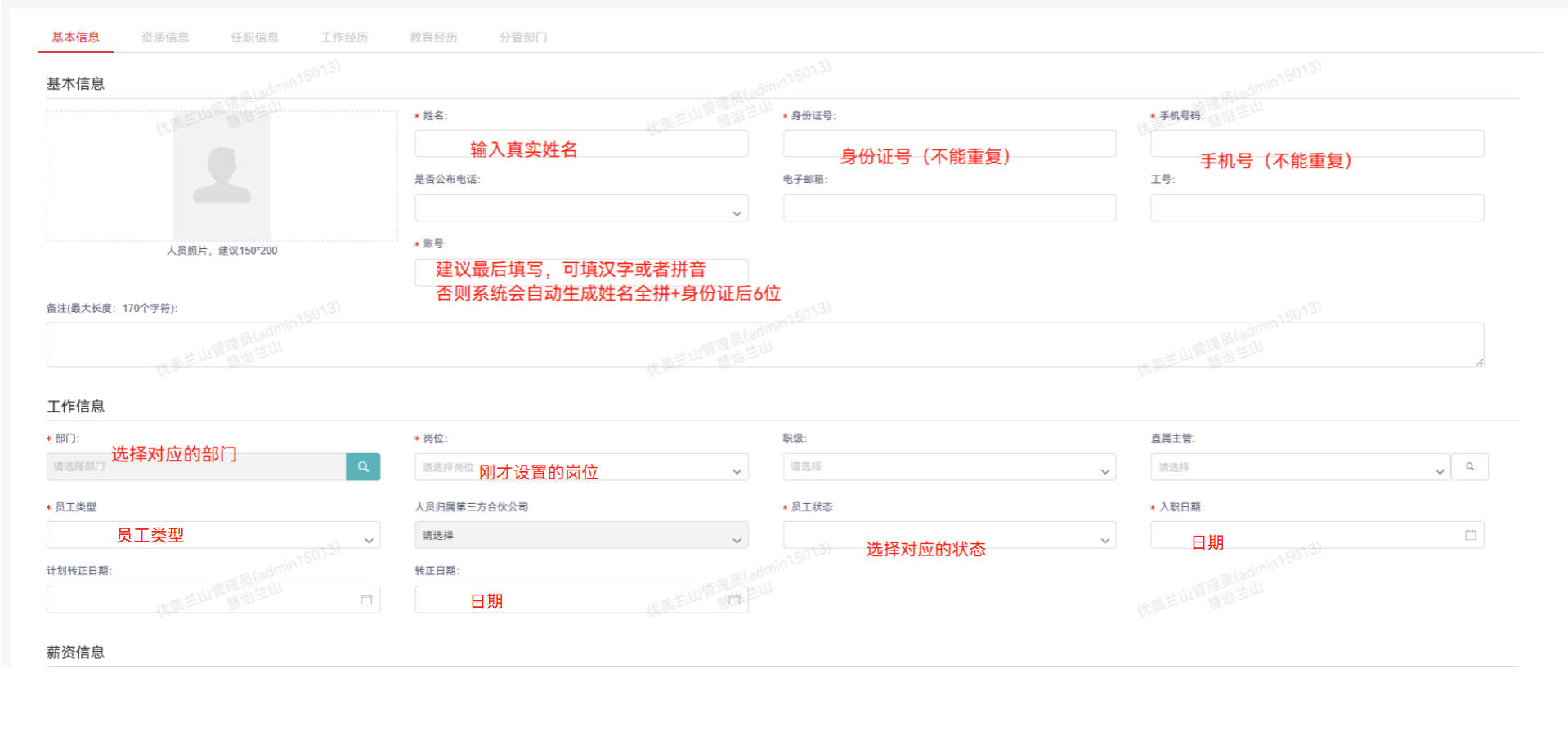 - 无部门直接录入子管理员信息